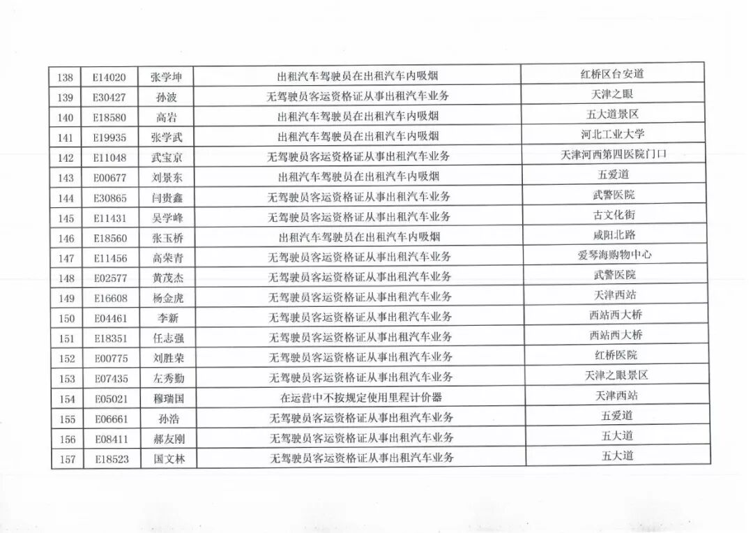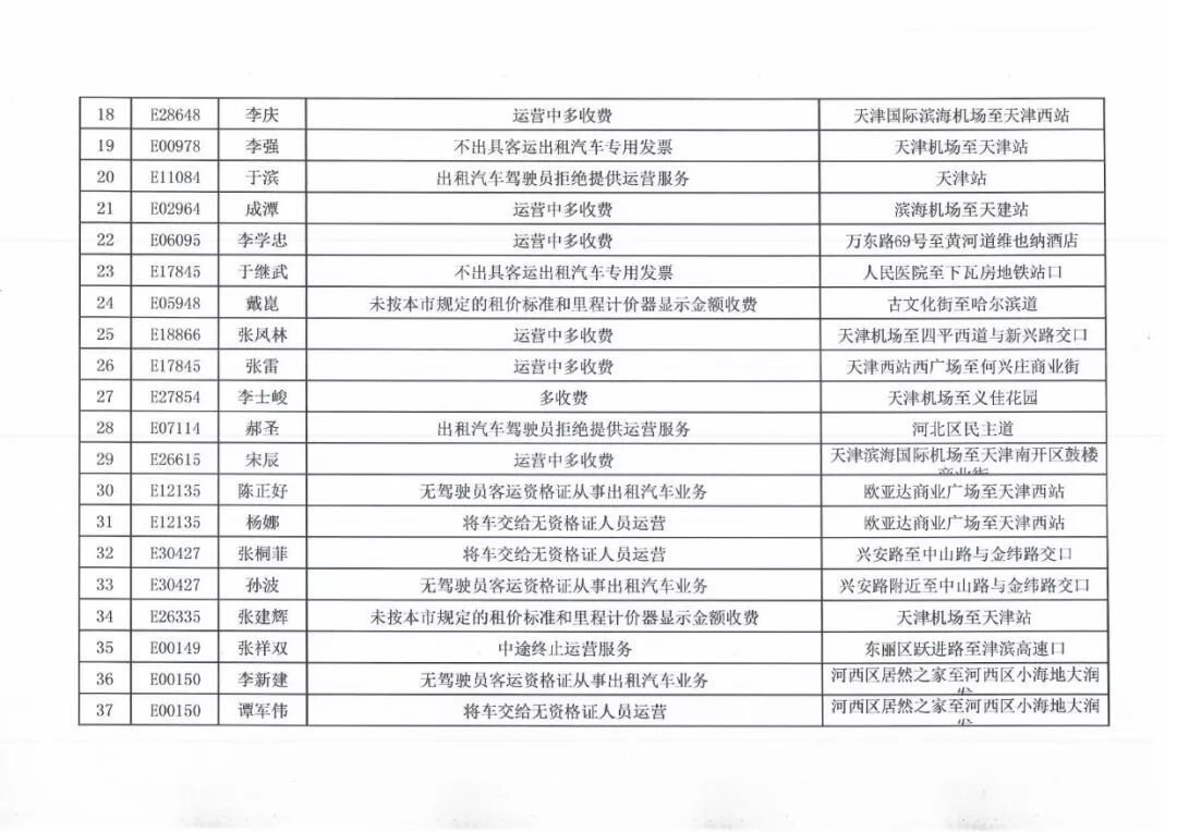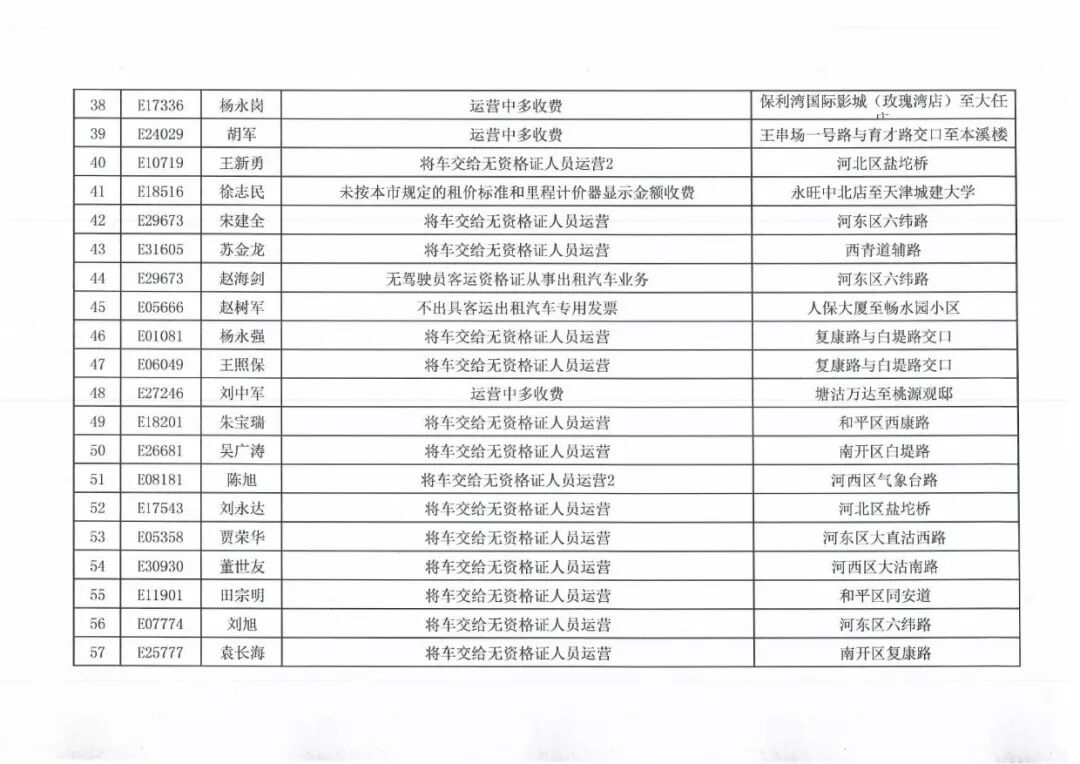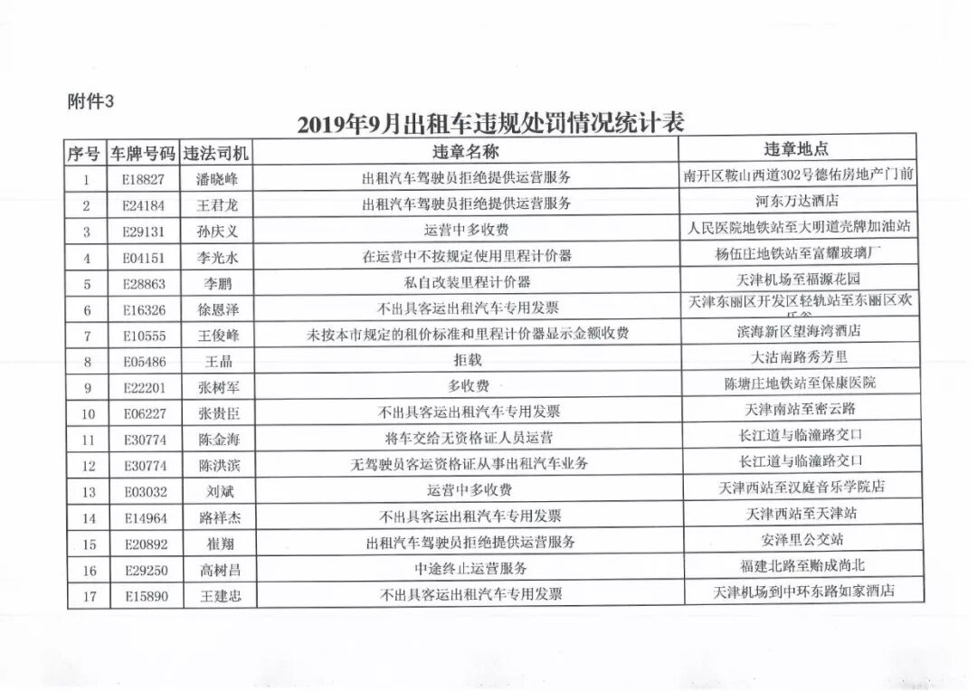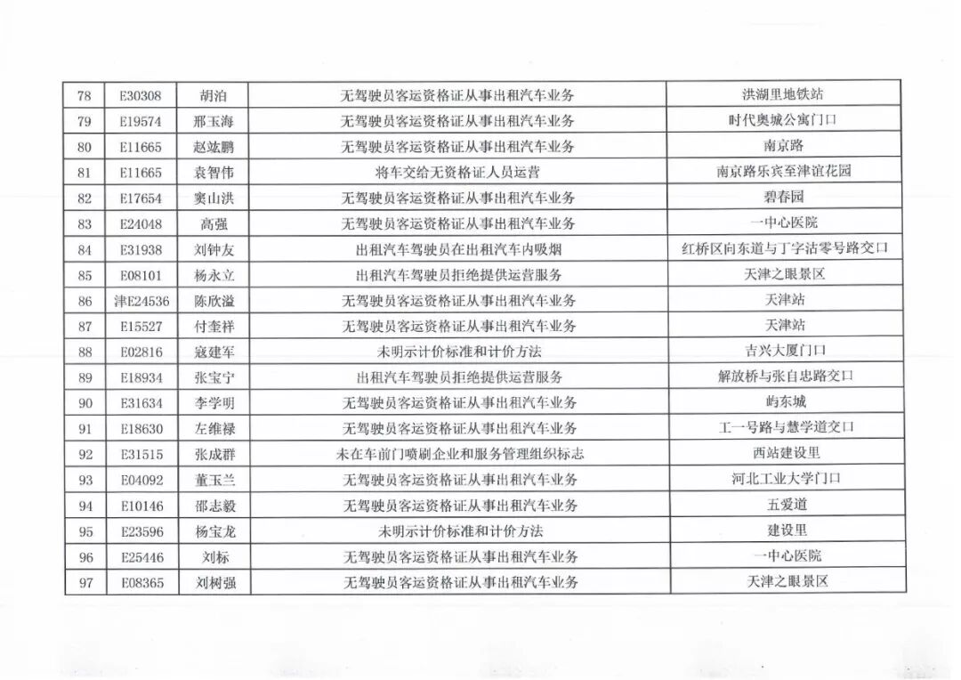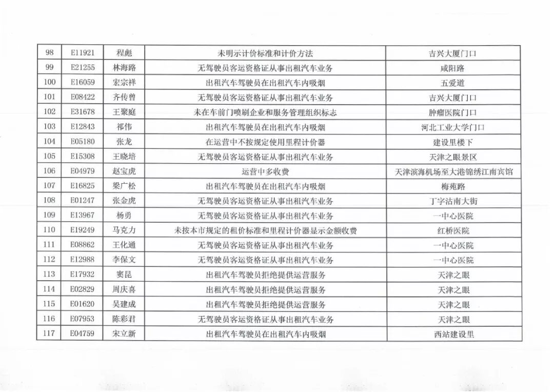 100名被投诉出租车司机名单