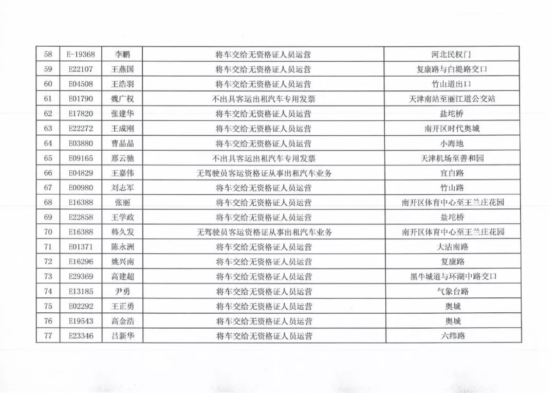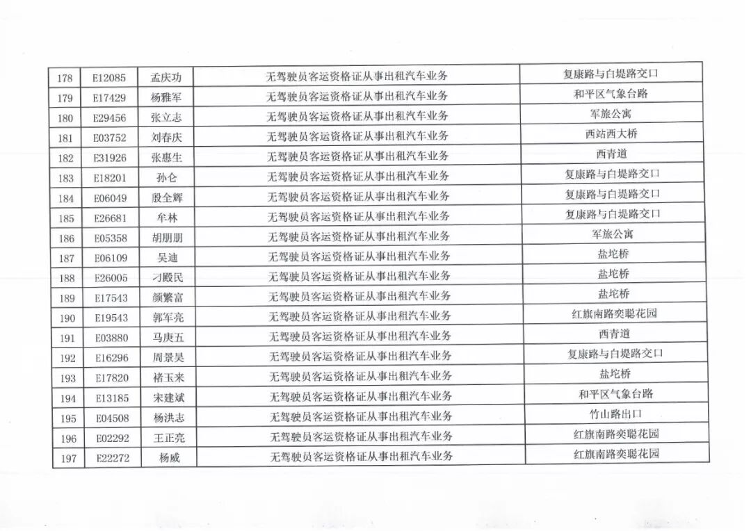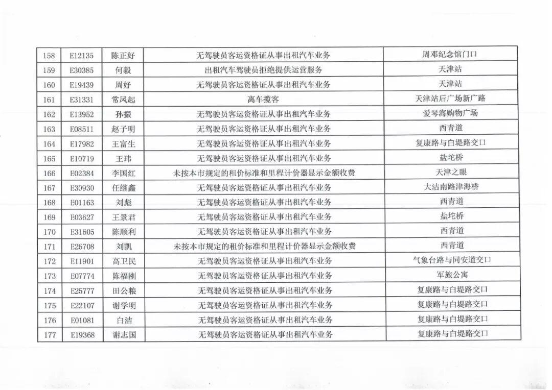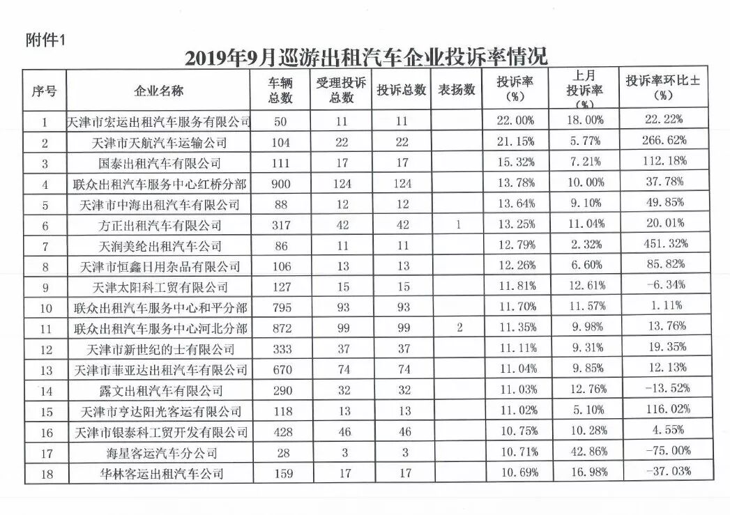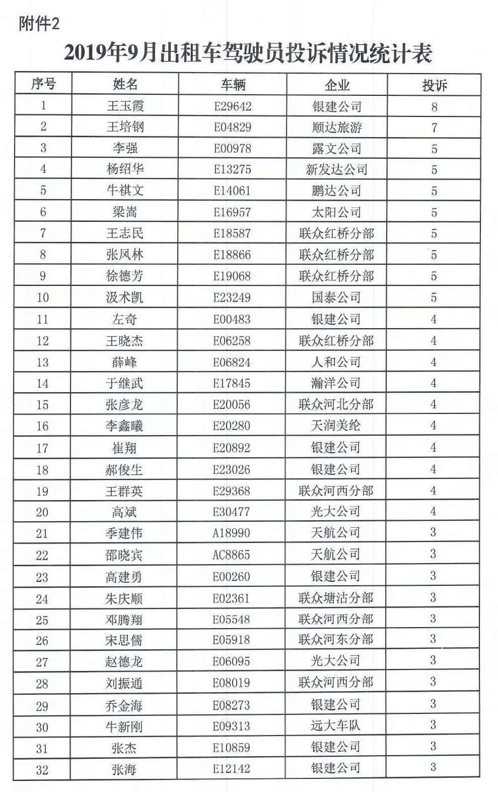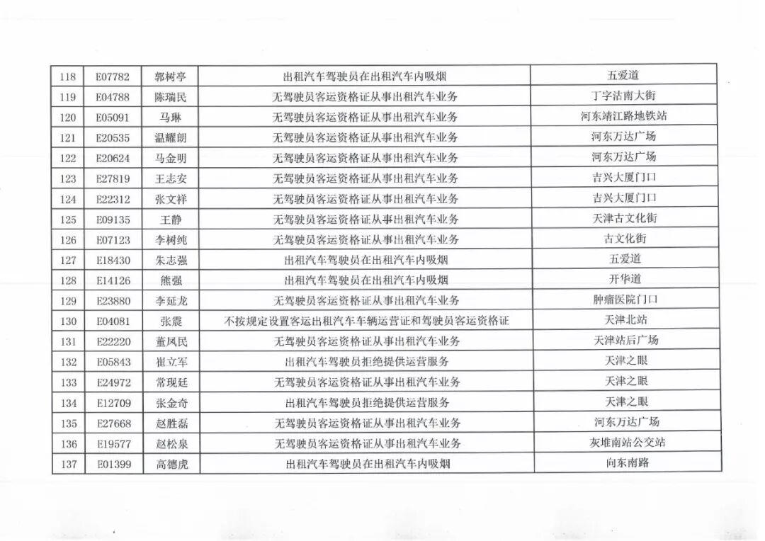 100名被投诉出租车司机名单