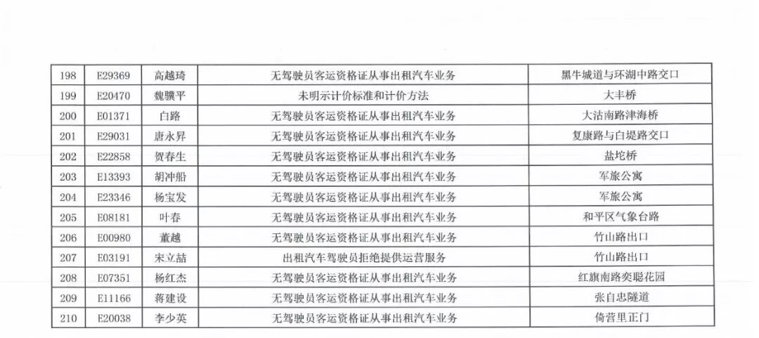 以及210名出租车驾驶员违章处罚信息等情况