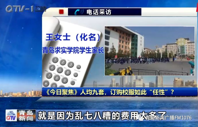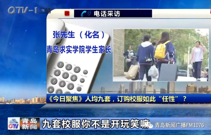 青岛求实学院学生家长张先生(化名):9套校服你不是开玩笑嘛,孩子上学干啥需要用9套校服,真没法说,有些话。)