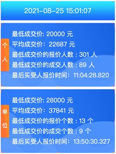 单位车牌方面,最低成交价为20500元,平均成交价为62101元。