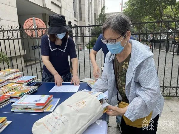 学校副校长胡晓璇说,根据教育部门要求,学校制定了教科书发放工作方案,按照错时、错年级、不集聚的方式分批领取。8月29日上午是一、三、六年级,30日上午是二、四、五年级。为了方便家长即拿即走,老师们提前把教材打包成“教材包”,以六年级为例,一人十本,家长签字拿书,整个过程只要2、3秒。“提前好几天就做好准备,老师们把教材按照年级和班级分好,今天一大早,老师们到学校门口,把教材整理成一份一份,家长先签字,然后拿到新教材就能走,速度比以往更快了。”胡晓璇说。